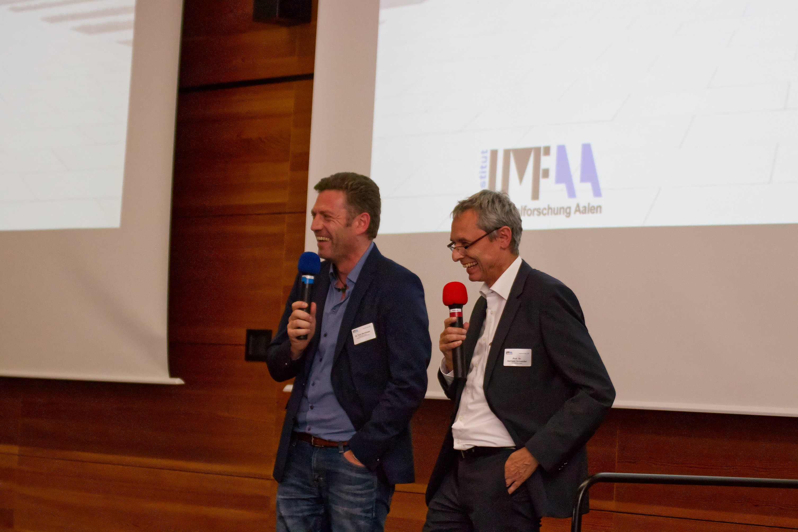 - Prof. Gerhard Schneider und Dr. Timo Bernthaler freuen sich über die erfolgreiche Veranstaltung.