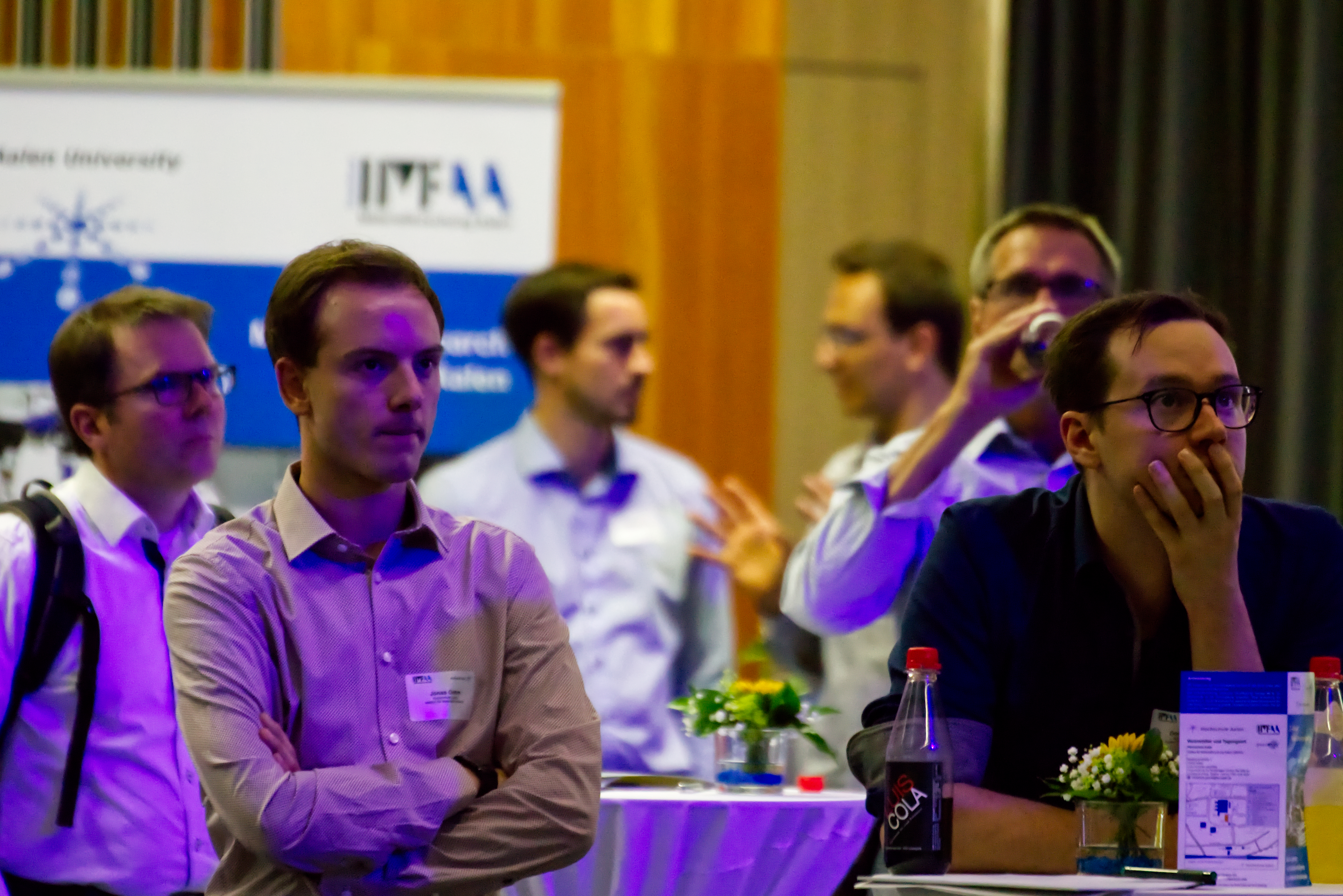 Der Nachmittag wurde von Doktoranden des IMFAA und der Machine Learning Group gestaltet. In ihren Beiträgen gingen die Nachwuchswissenschaftler tiefer auf Anwendungsfälle von Machine Learning in der Mikroskopie und der zerstörungsfreien Röntgenprüfung ein und zeigten dabei, dass Machine Learning den Menschen oft einen Schritt voraus ist. Den Anfang machte Andreas Jansche, der sich mit den Herausforderungen der Digitalisierung in der Mikroskopie beschäftigte. Er zeigte unter anderem, wie große hochaufgelöste mikroskopische Bilder einer Lithium-Ionen Zelle für ein Automobil effizient ausgewertet und die Daten mittels Machine Learning verwaltet werden können. Die Vorteile von Machine Learning in puncto Robustheit und Reproduzierbarkeit sowie die Möglichkeiten zur Analyse komplexer Werkstoffe, waren Thema des Vortrags von Amit Kumar Choudhary. Er zeigte Lösungen zur quantitativen Analyse der für die magnetischen Eigenschaften wichtigen Korn- und Domänenstruktur in Sintermagneten für elektrische Maschinen. Auch gelang es ihm bei der Messung von Verunreinigungen in Stählen die eigenschaftsrelevanten Einschlüsse deutlich besser zu erfassen.. Daniel Sauter präsentierte, wie mittels tiefer neuronaler Netze – dem sogenannten Deep Learning – sicherheitsrelevante Fehler in Röntgenbildern von Turbinenschaufeln in Flugzeugtriebwerken vom Rechner erfasst und zugeordnet werden können – und dass dieser den Menschen im „Entdecken“ der Fehler überholt. Den Abschluss bildete Olatomiwa „Tommy“ Badmos. Er stellte in seinem Vortrag zur Detektion von Auffälligkeiten in Materialgefügen dar, wie Algorithmen, die Google zur Objekt- oder Gesichtserkennung verwendet, in der Mikroskopie funktionieren. So zeigte er, wie in einem Mikroskopbild einer Lithium-Ionen-Batterie Deep Learning „quasi live“ und eigenständig kritische Fremdeinschlüsse oder Risse entdeckt und zuordnet.